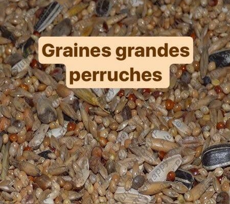 – perruches : nos mélanges sont spécifiques : toui, agapornis, euphème, conure. Nous avons bien entendu un mélange grande perruche.