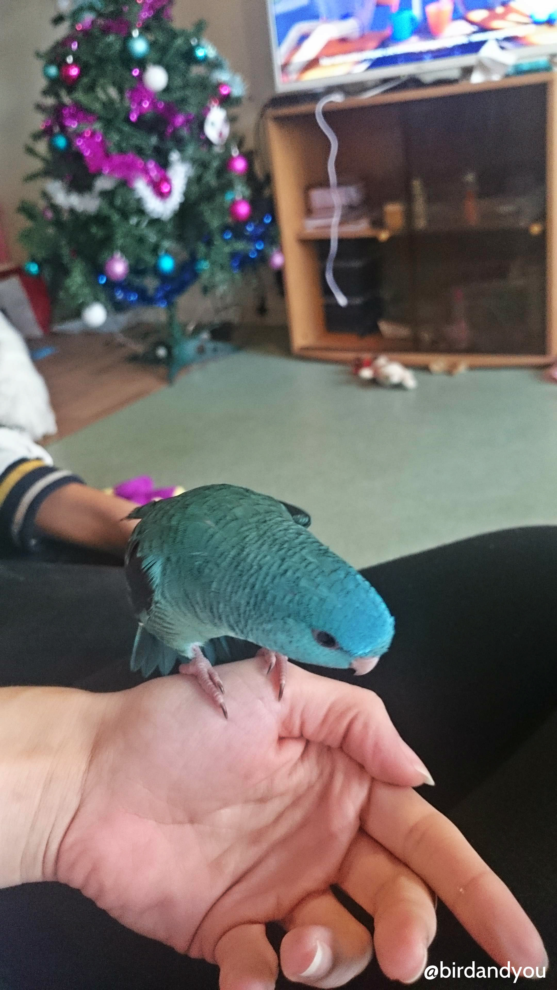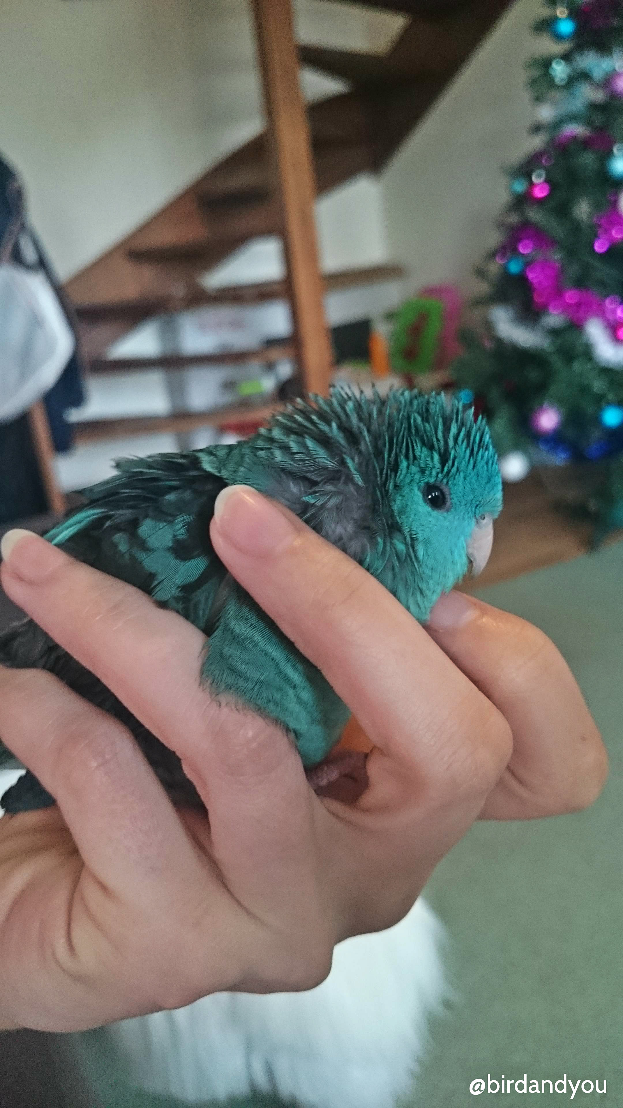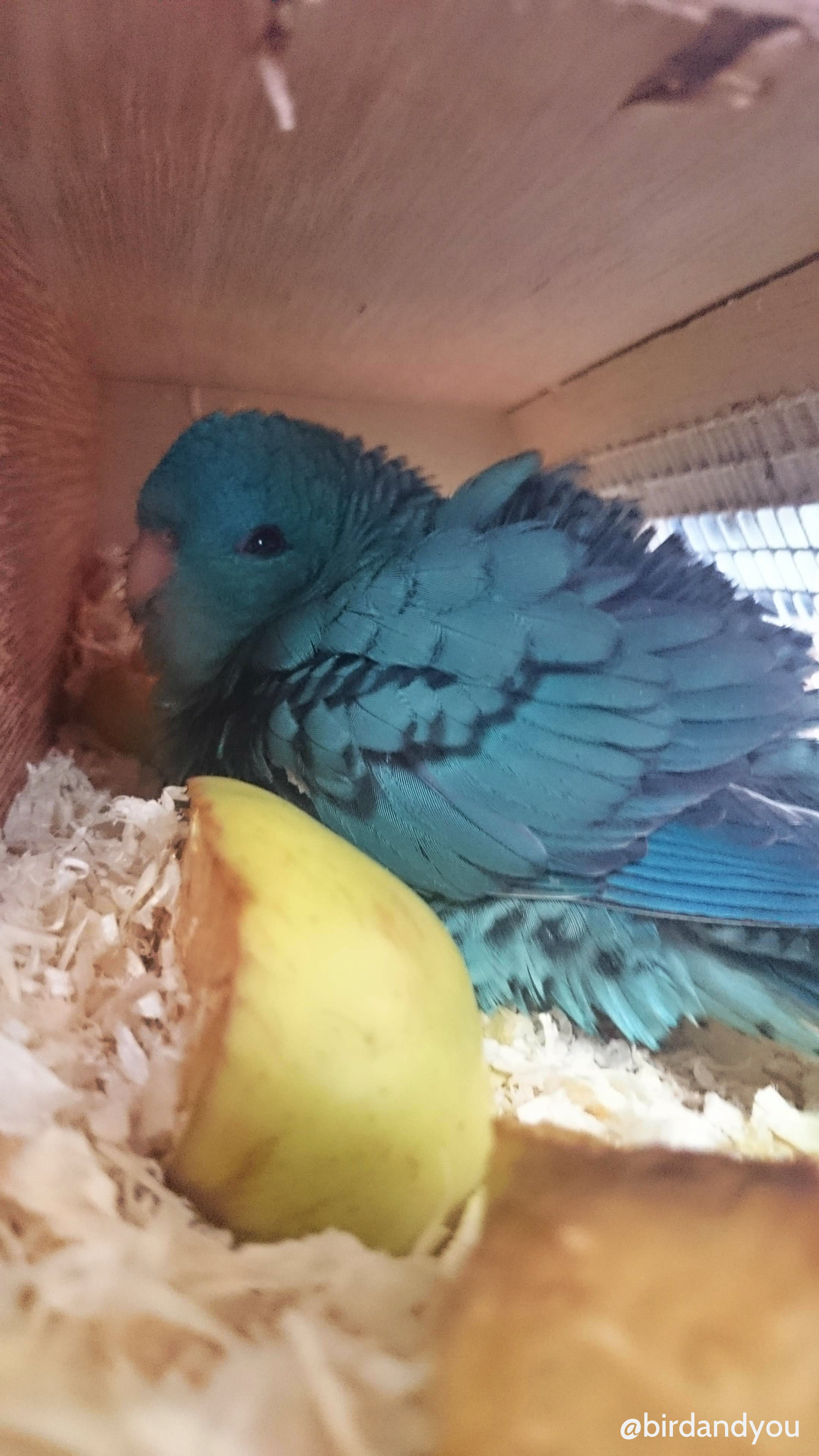 Le lendemain, la petite perruche catherine est bien arrivée chez sa nouvelle famille. Le voyage s’est bien passé et le premier contact était chaleureux avec Caroline et sa famille.